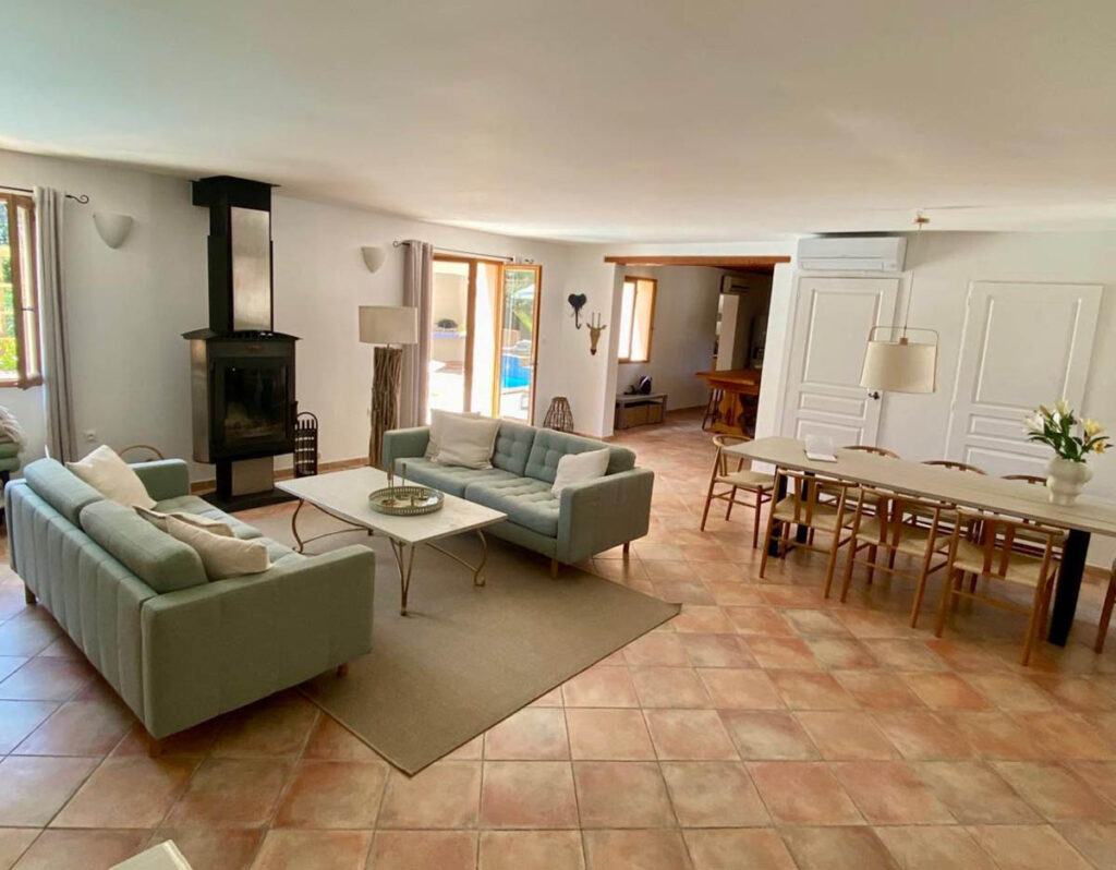 Une grande terrasse donnant sur la piscine et le jardin vous permettra de profiter de votre séjour.